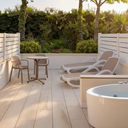 Each of the air-conditioned rooms has a balcony and a terrace, and some feature stylish interior. Private bathrooms include nice touches such as hair dryers and bath sheets. The units also face the pool.